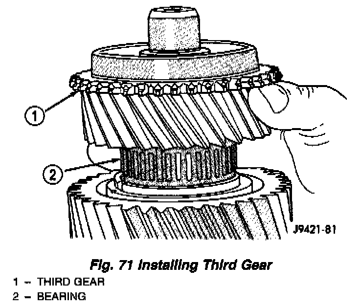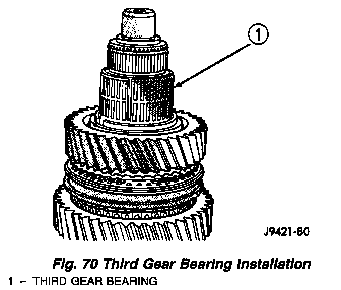 29. Install third gear needle bearing on shaft (Fig. 70).