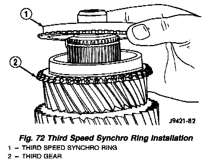 31. Install third speed synchro ring on third gear (Fig. 72).