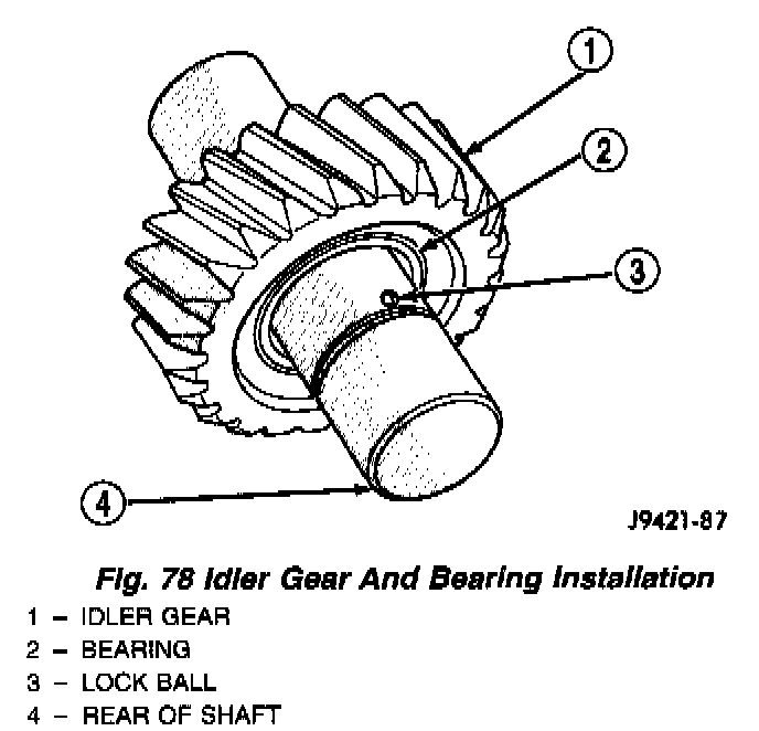 2. Slide idler gear bearing on shaft (Fig. 78). Bearing fits either way on shaft.