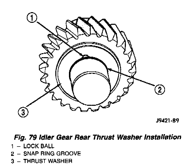 5. Slide thrust rear thrust washer onto shaft and over lock ball (Fig. 79).