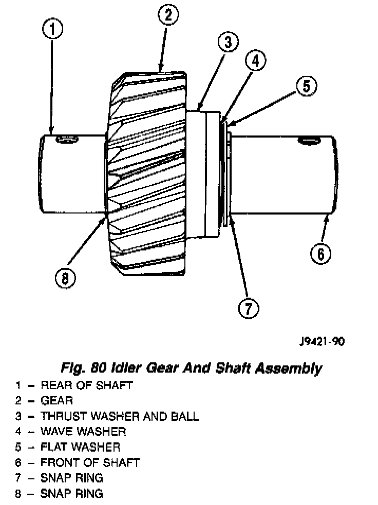 9. Install wave washer, flat washer and remaining snap ring on idler shaft (Fig. 80). Be sure snap ring is fully seated.
