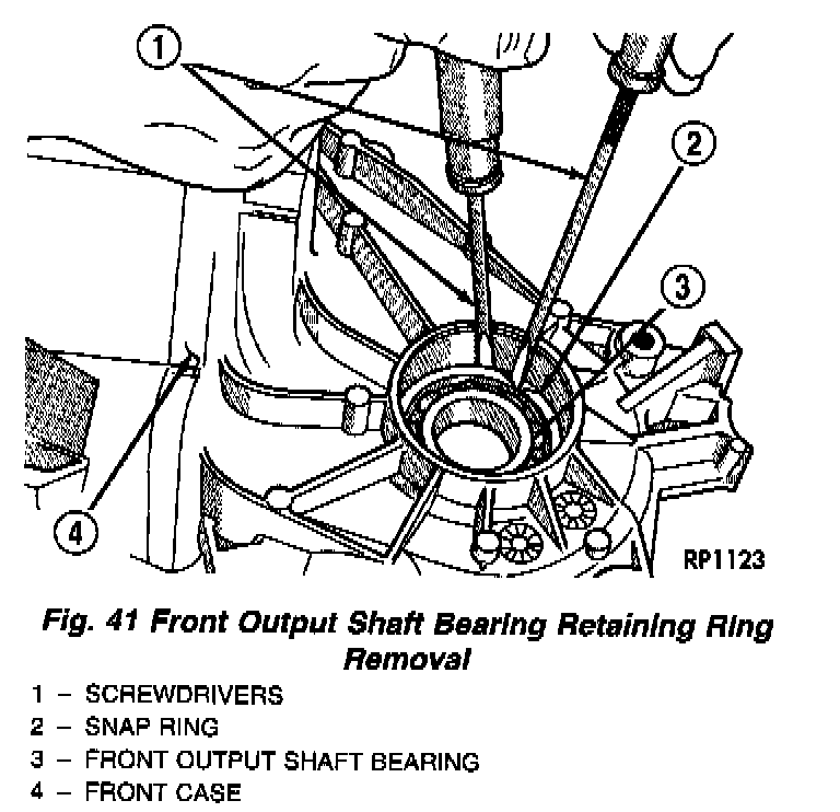 2. Remove the front output shaft bearing retaining ring with screwdriver (Fig. 41).