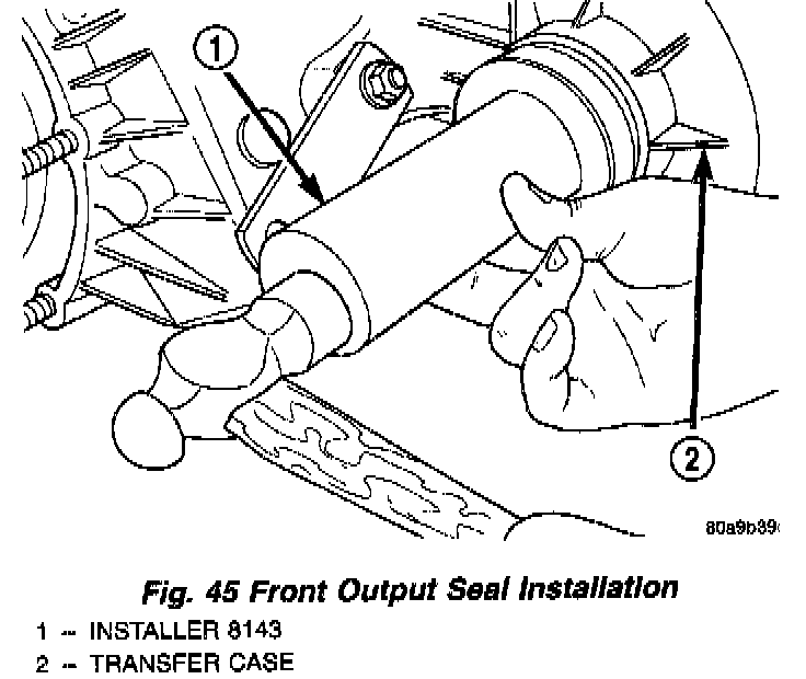 b. Start seal in bore with light taps from hammer (Fig. 45). Once seal is started, continue tapping seal into bore until installer tool bottoms against case.
