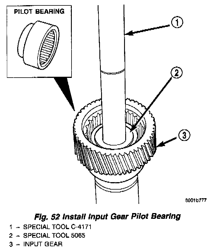 14. Install new pilot bearing with Installer 5065 and Handle C-4171 (Fig. 52).