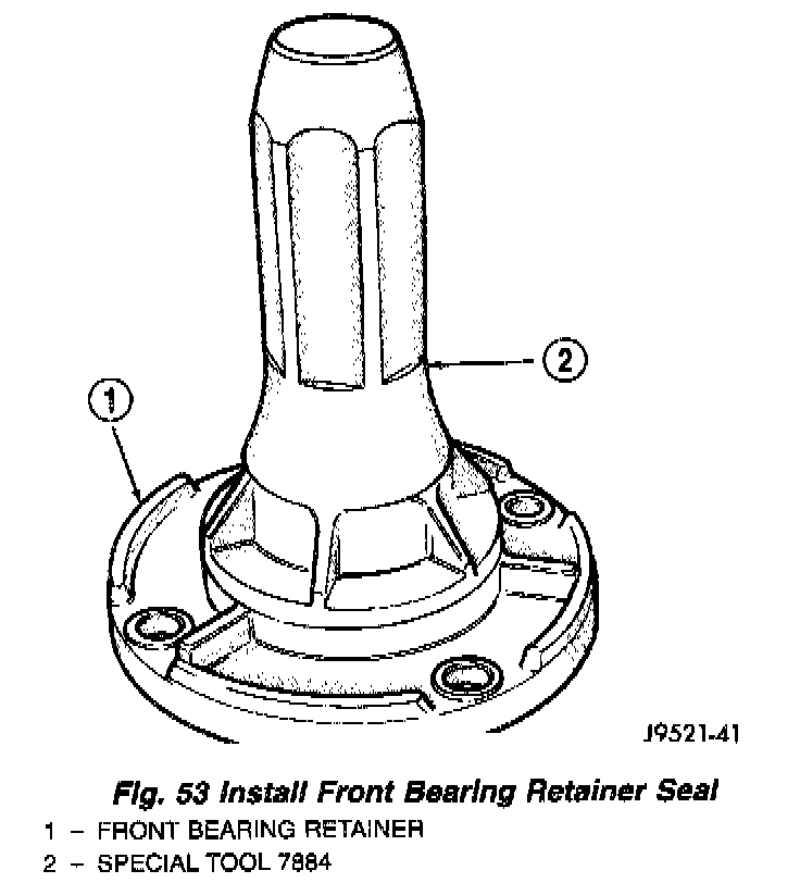 16. Install new front bearing retainer seal with Installer 7884 (Fig. 53).