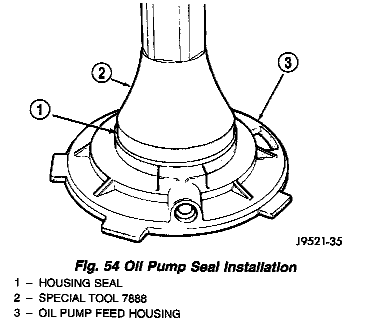18. Install new seal in oil pump housing with Installer 7888 (Fig. 54).
