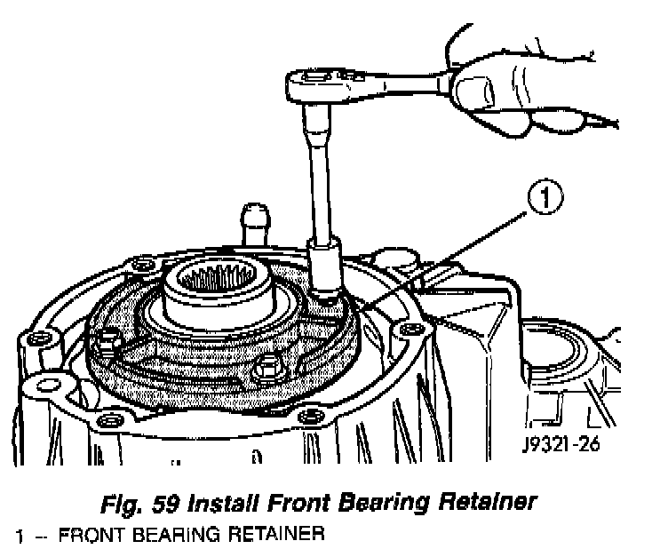 6. Install bolts to hold retainer to transfer case (Fig. 59). Tighten to 21 Nm (16 ft. lbs.) of torque.
