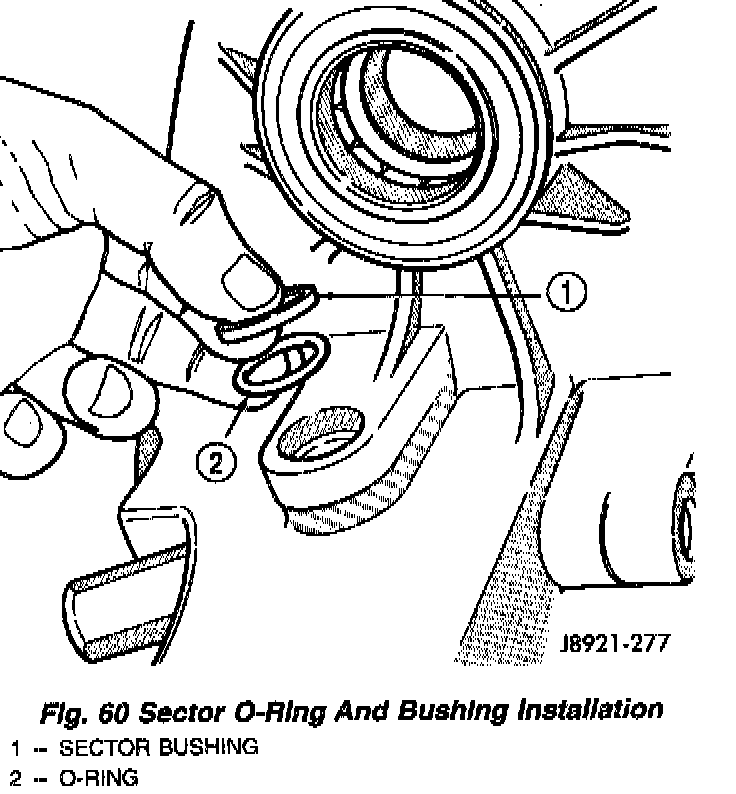 1. Install new sector shaft O-ring and bushing (Fig. 60).