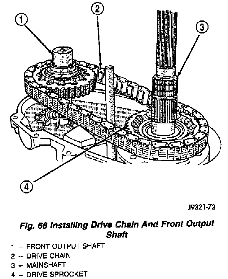 2. Assemble drive chain and front output shaft (Fig. 68).