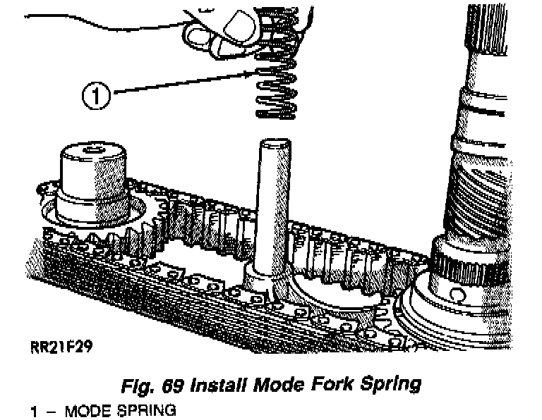 5. Install mode spring on upper end of mode fork shift rail (Fig. 69).