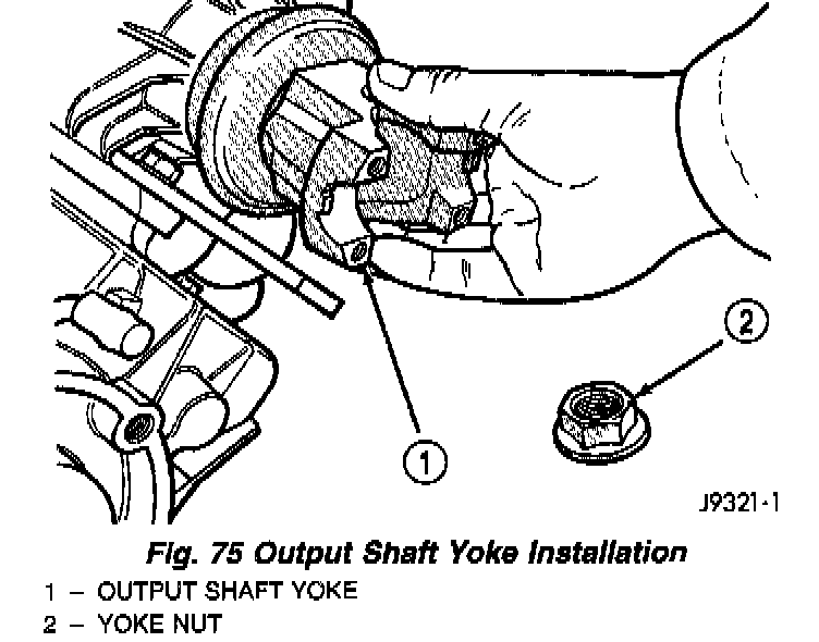 6. Install yoke and new yoke nut on front output shaft (Fig. 75).
