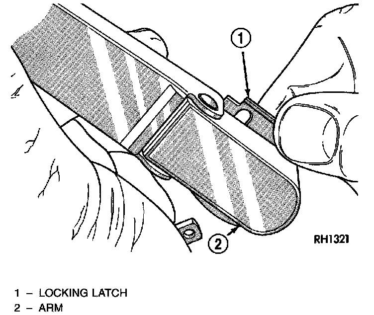 1. Lift the wiper arm to permit the latch to be pulled out to its holding position, then release the arm. The arm will remain off the lift glass with the latch in this position.