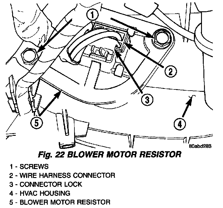 5. Remove the two screws that secure the resistor to the HVAC housing.
