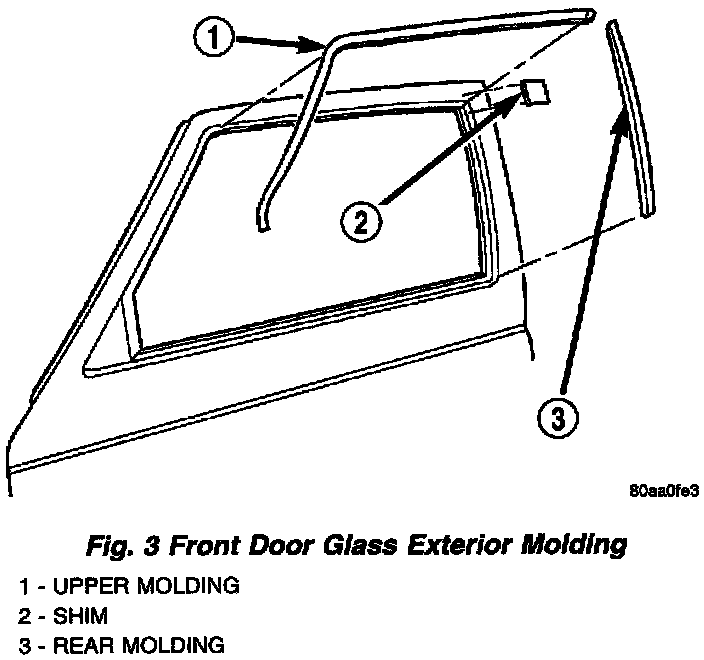 3. Pry and pull the molding sections from the door panel flange (Fig. 3).