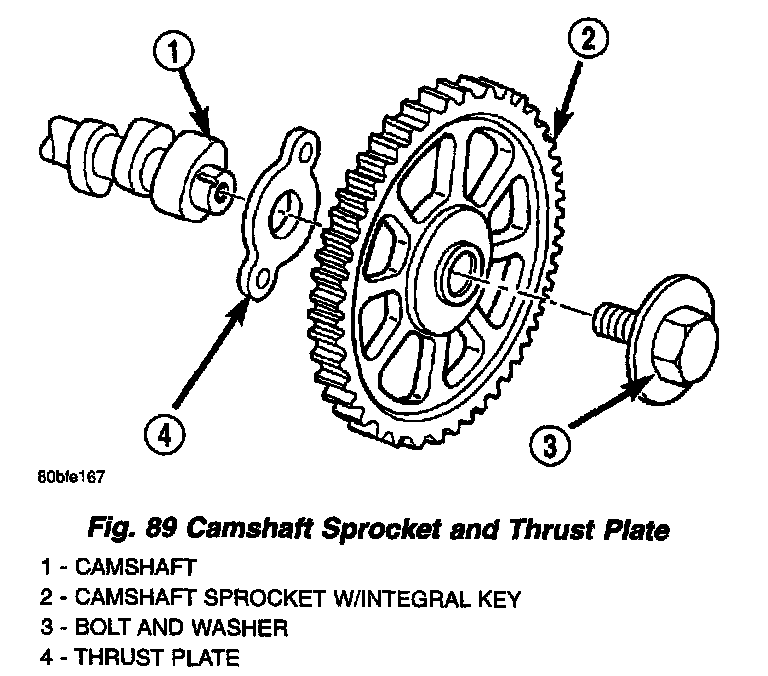 2. Install the camshaft sprocket bolt and washer (Fig. 89). Tighten the bolt to 68 Nm (50 ft. lbs.) torque.