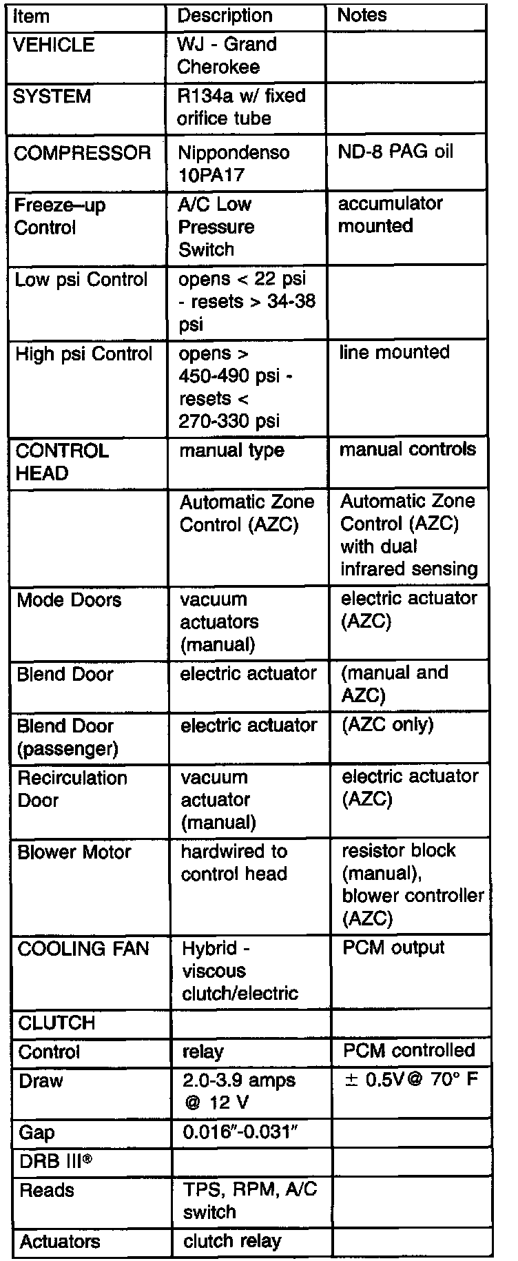 A/C Application Table: