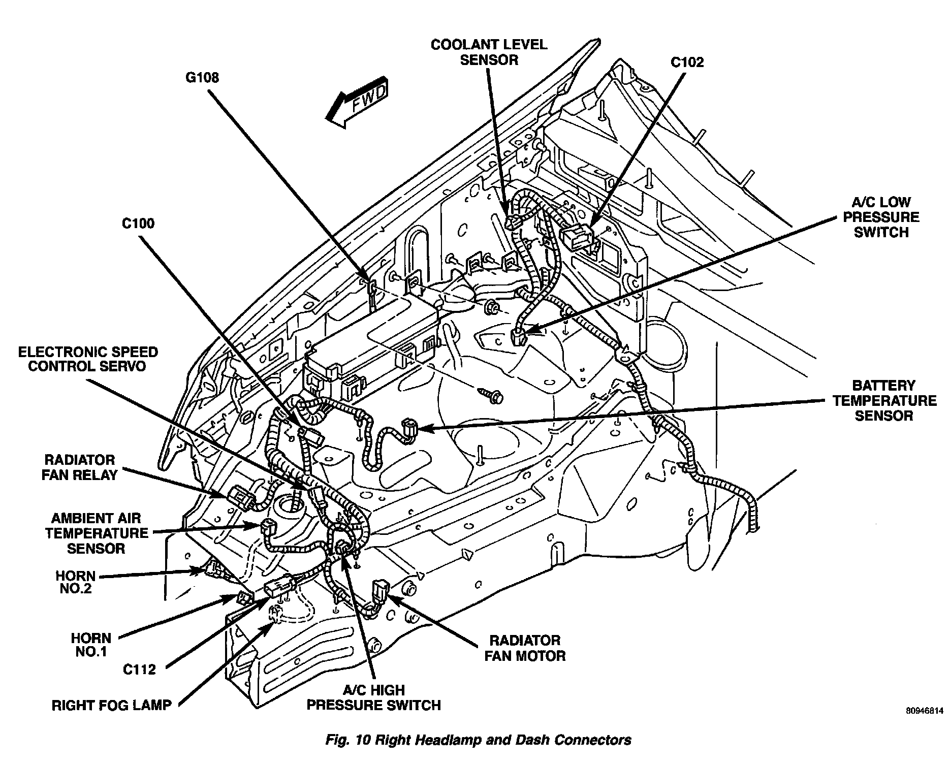 Fig.10 Right Headlamp And Dash Connectors: