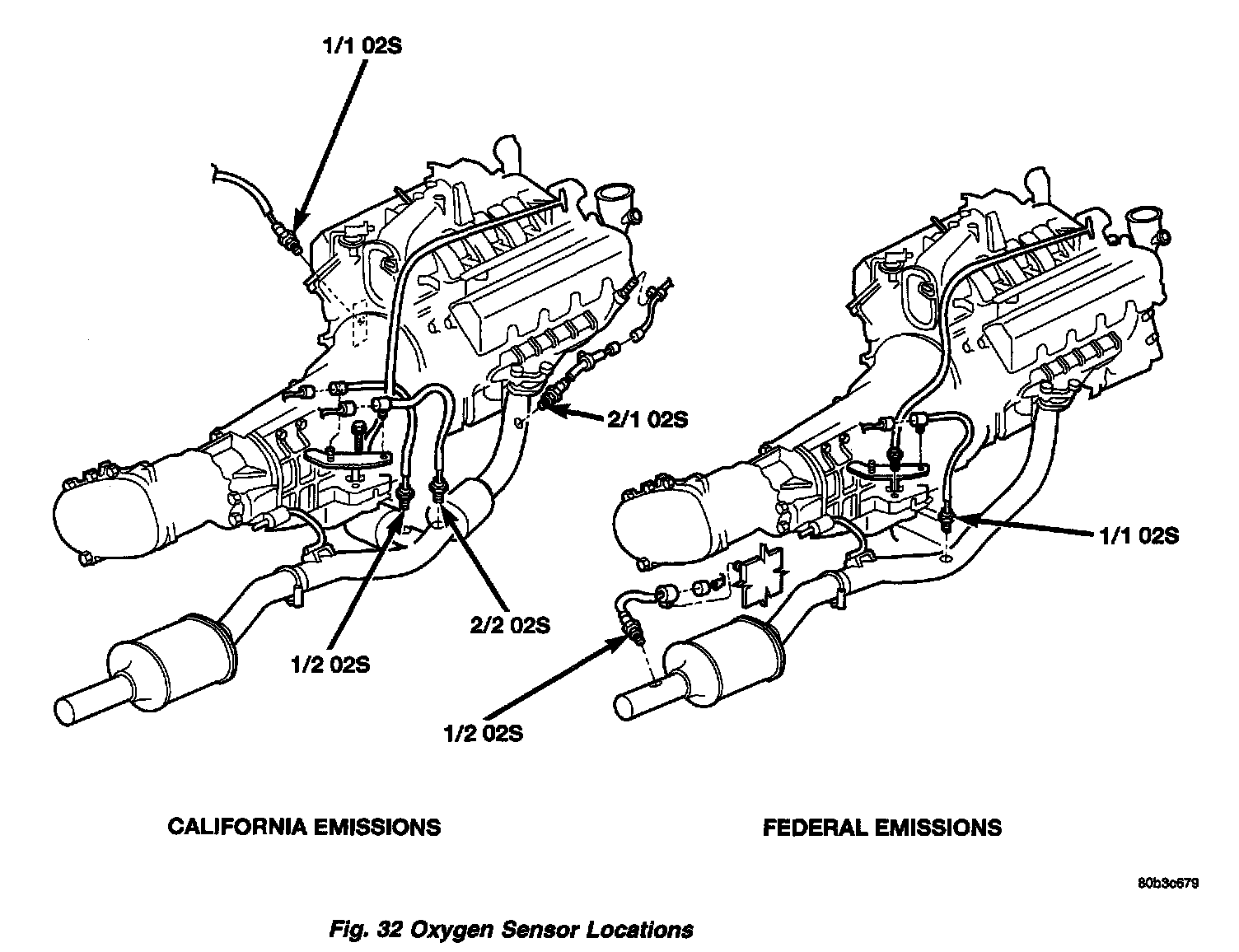 WARNING: THE EXHAUST MANIFOLD, EXHAUST PIPES AND CATALYTIC CONVERTER(S) BECOME VERY HOT DURING ENGINE OPERATION. ALLOW ENGINE TO COOL BEFORE REMOVING OXYGEN SENSOR.