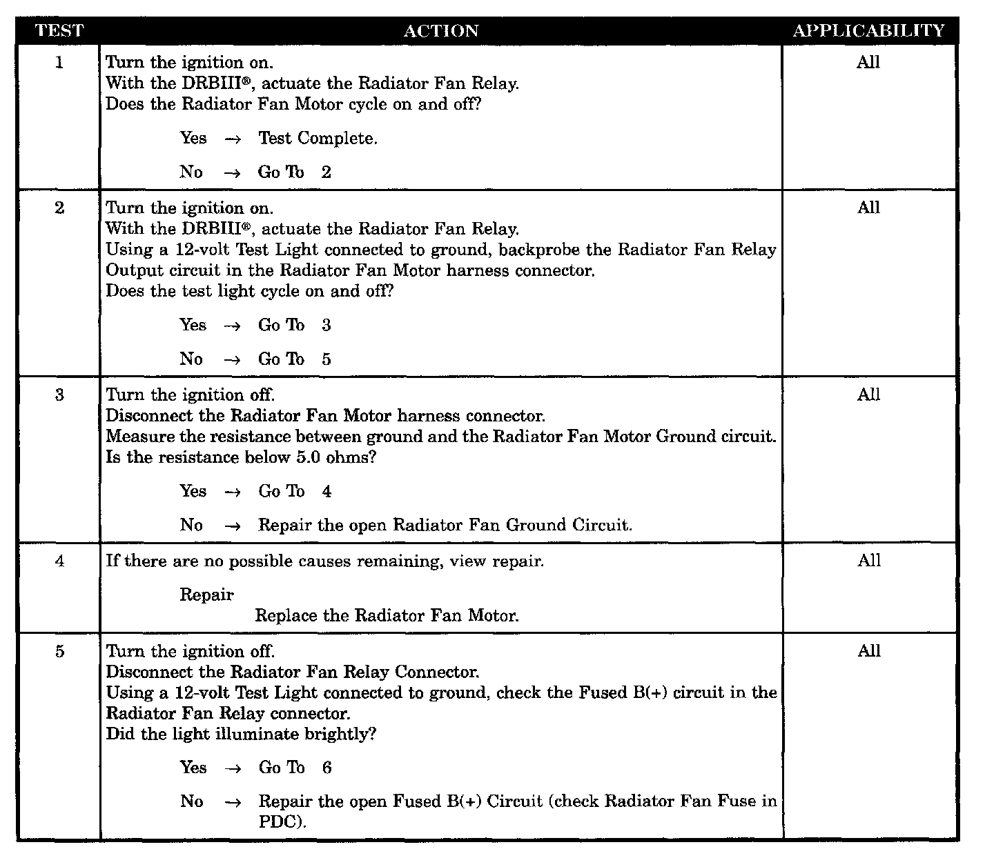 CHECKING RADIATOR FAN OPERATION WITH NO DTC'S