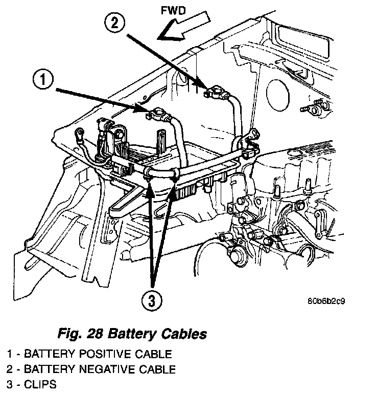 2. Position the battery wire harness into the engine compartment (Fig. 28).