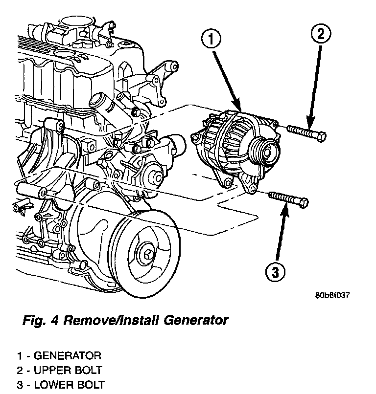 5. Remove generator mounting bolts (Fig. 4)