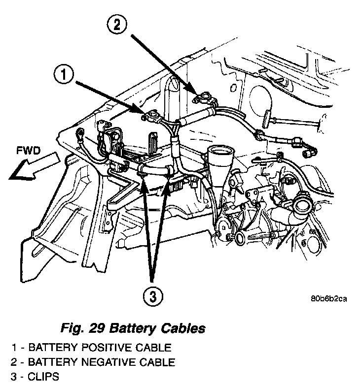 2. Position the battery wire harness into the engine compartment (Fig. 29).