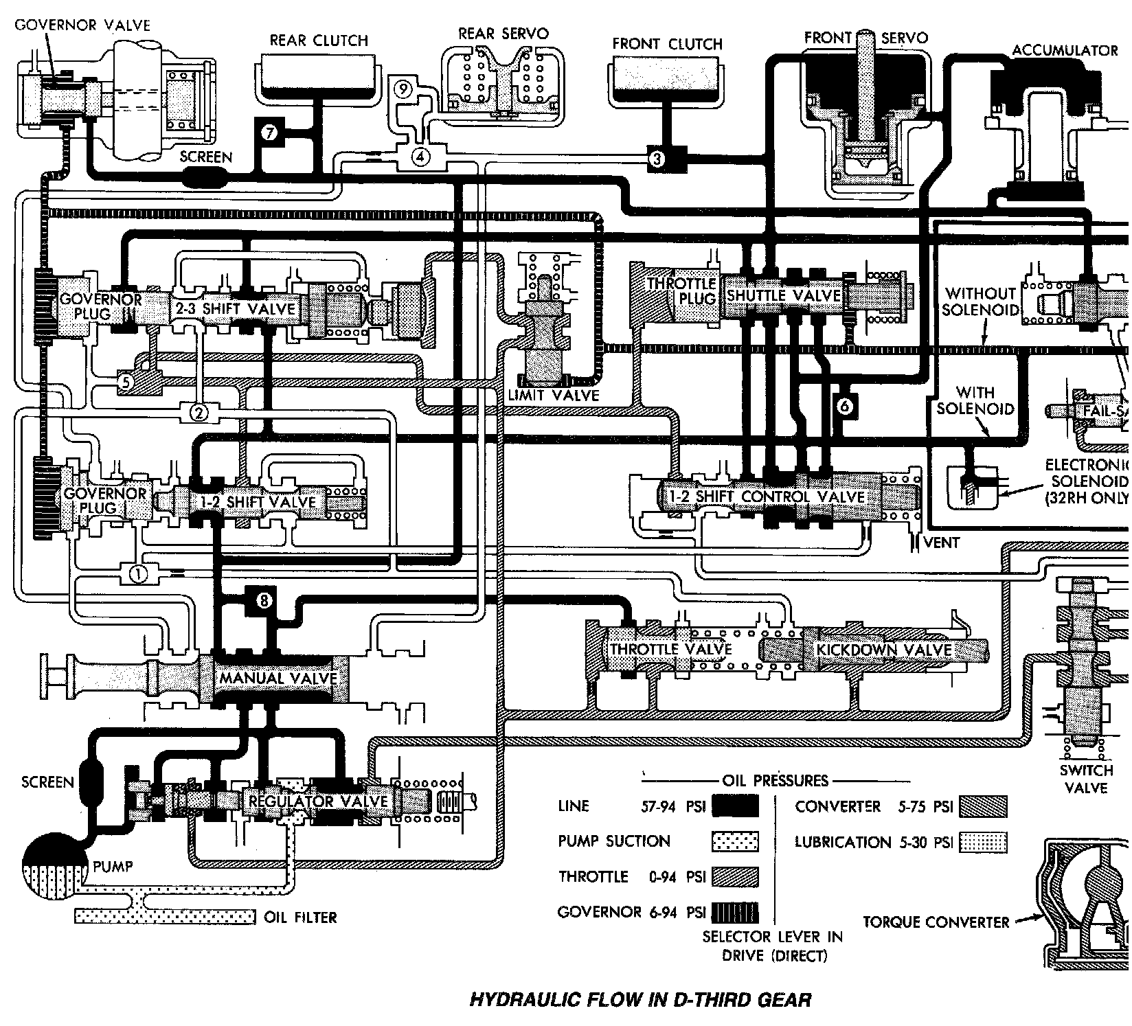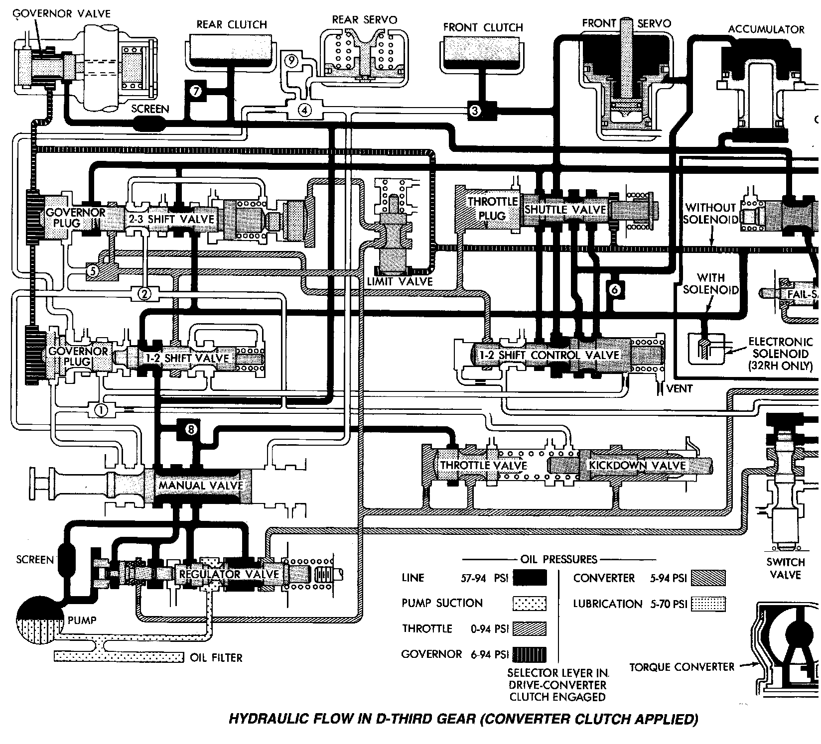 Hydraulic Flow in D-Third Gear (Converter Clutch Applied)