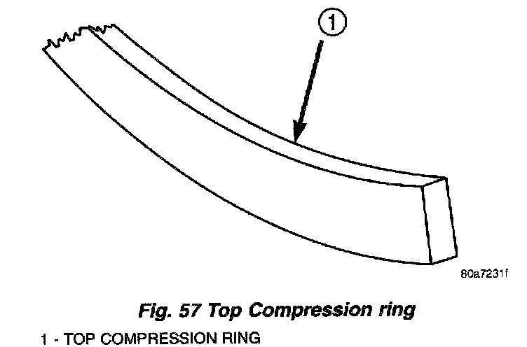 6. The two compression rings are different and cannot be interchanged. The top compression ring can be identified by the shiny coating on the outer sealing surface and can be installed with either side up. (Fig. 57).