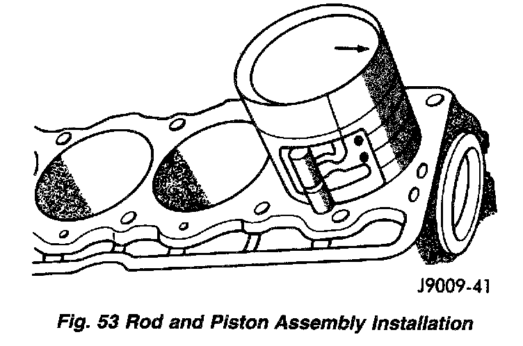 5. Ensure the arrow on the piston top points to the front of the engine (Fig. 53).