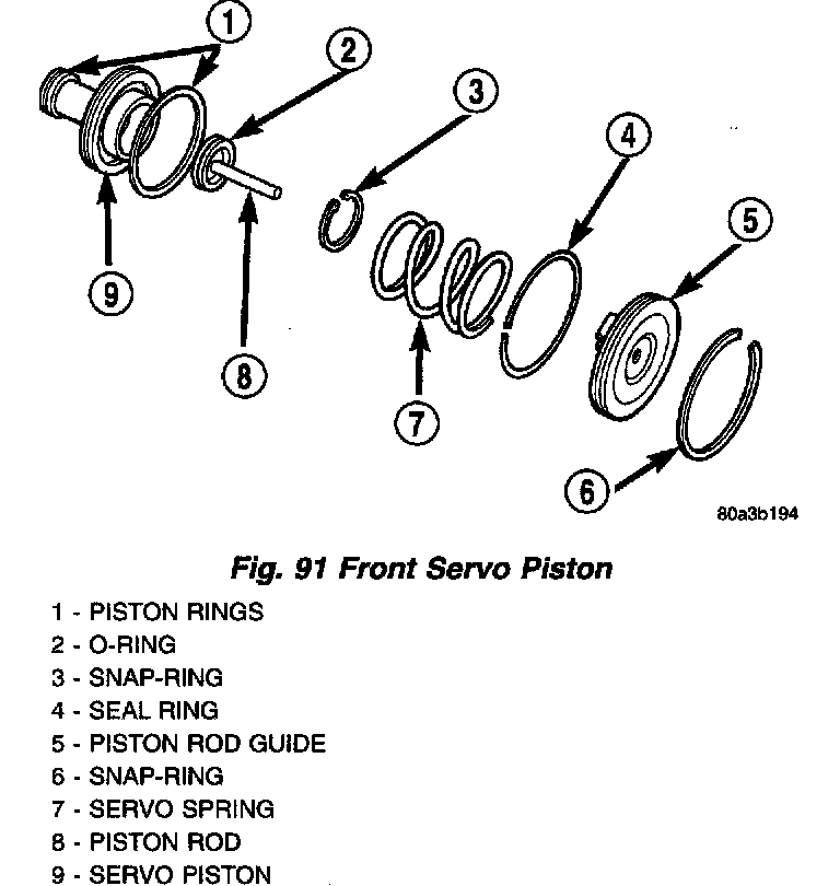 Clean the servo piston components (Fig. 92) with solvent and dry them with compressed air. Wipe the band clean with lint free shop towels.