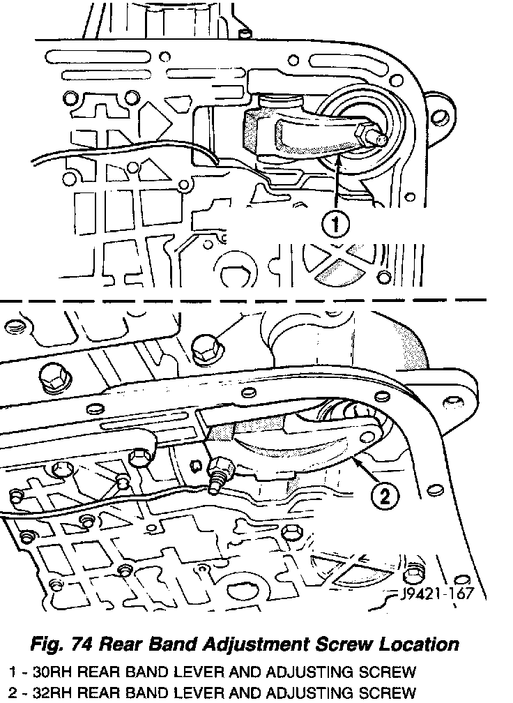 The transmission oil pan must be removed for access to the rear band adjusting screw.