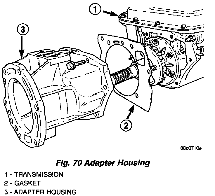 6. Remove bolts holding adapter housing to transmission case (Fig. 70).