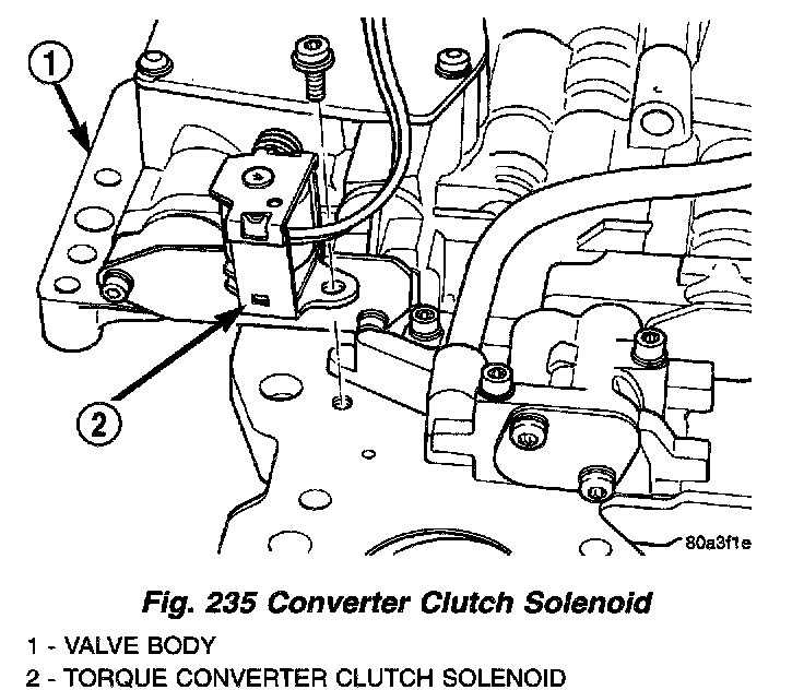36. If necessary, install a new O-ring on converter clutch solenoid (Fig. 235).