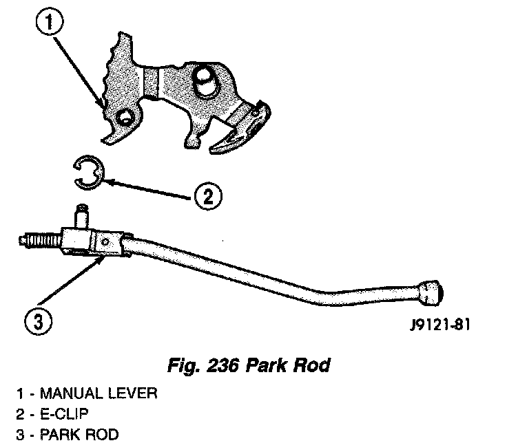 39. If necessary, insert park rod end into manual lever and install E-clip (Fig. 236).