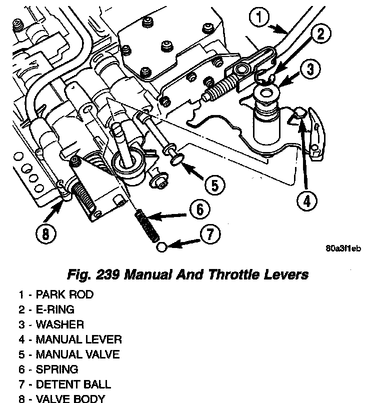 44. Install seal, washer, and E-clip to retain manual shaft to valve body (Fig. 239).