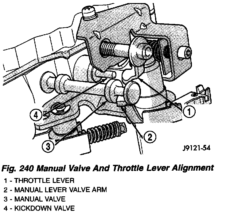 42. Insert throttle lever through transfer plate side of valve body and upward (Fig. 239).