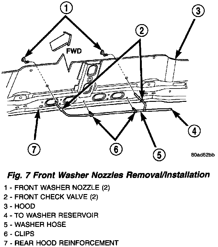 Fig.7 Front Washer Nozzles Removal/Installation: