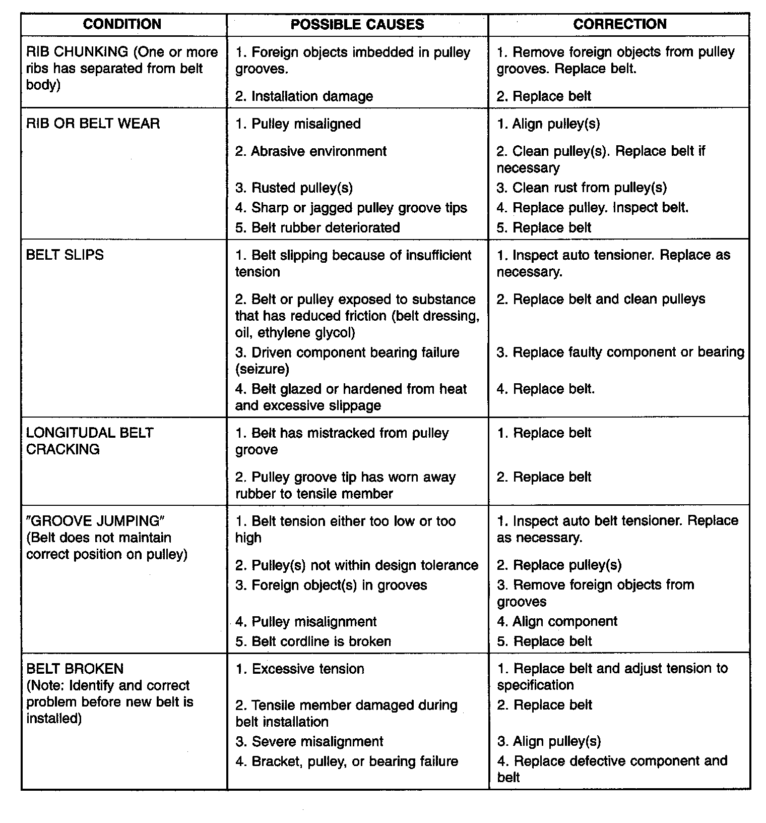 ACCESSORY DRIVE BELT DIAGNOSIS CHART