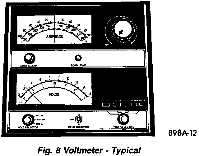 The following procedure should be used to recharge a completely discharged battery. Unless this procedure is properly followed, a good battery may be needlessly replaced.Fig.8 Voltmeter - Typical: