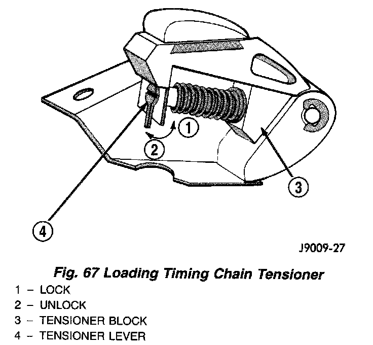 1. Turn the tensioner lever to the unlocked (down) position (Fig. 67).
