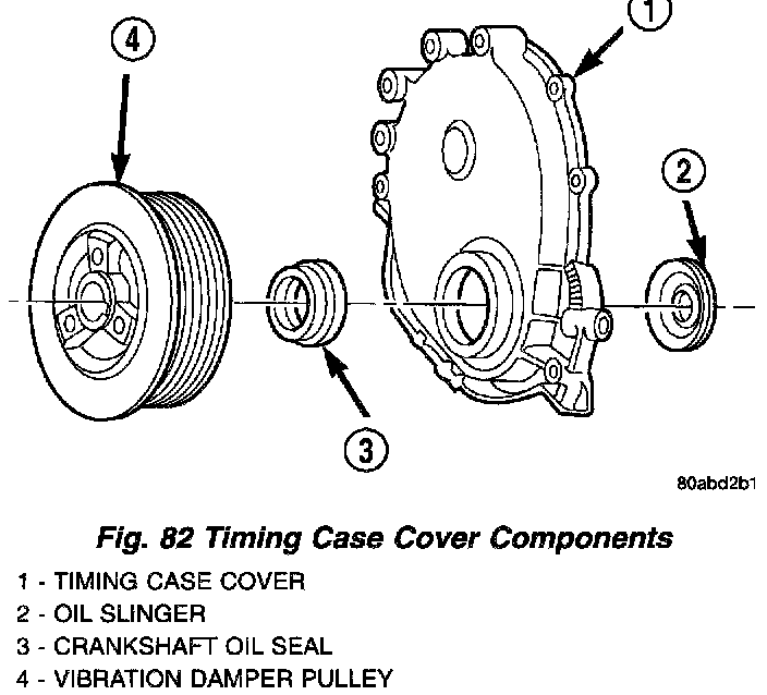 9. Pry the crankshaft oil seal from the front of the timing case cover (Fig. 82).