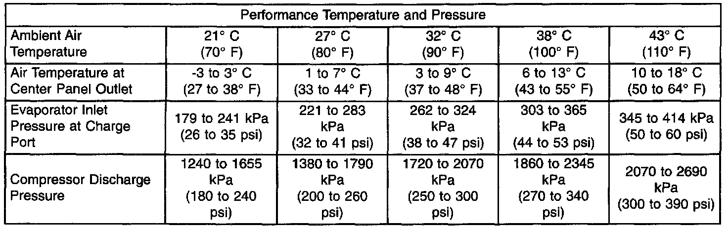 7. With the compressor clutch engaged, record the discharge air temperature and the compressor discharge pressure.
