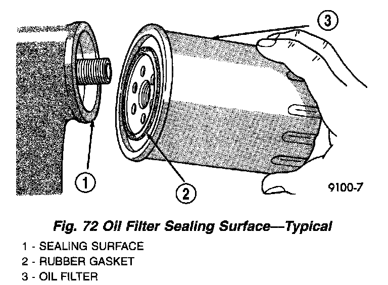 3. Rotate the oil filter counterclockwise to remove it from the cylinder block oil filter boss or filter adapter housing (Fig. 71).