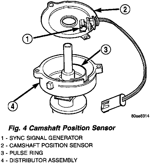 1. Install camshaft position sensor to distributor. Align sensor into notch on distributor housing.