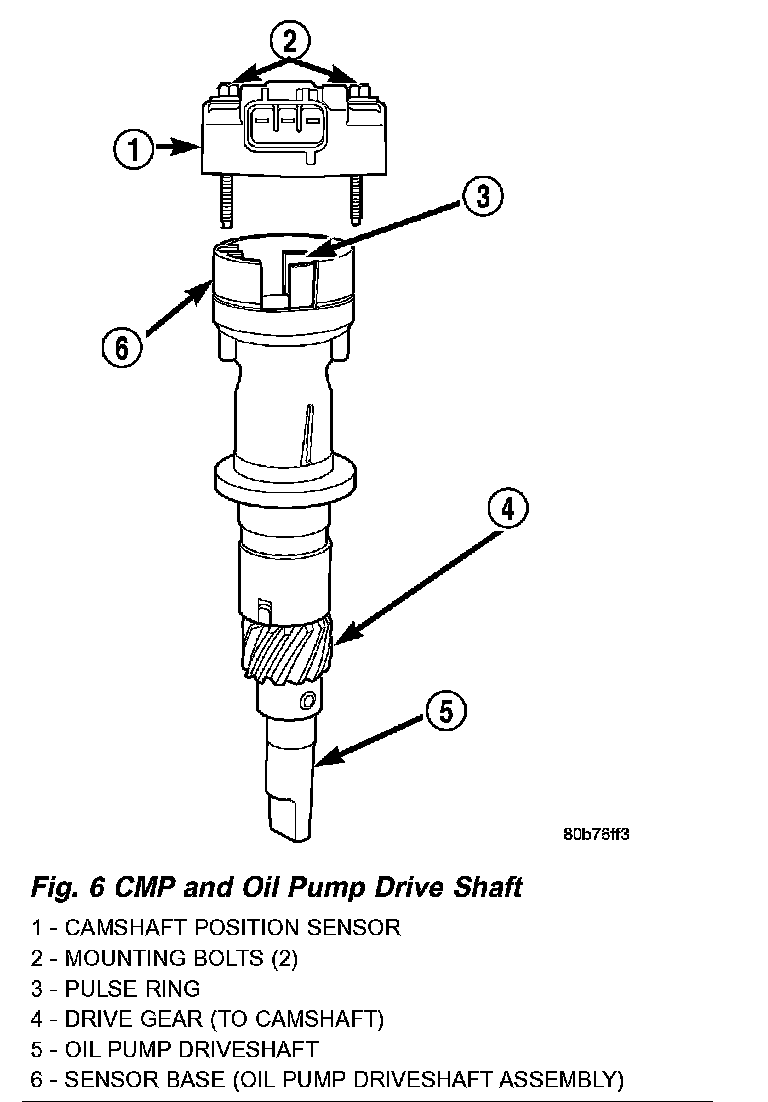 6. Install sensor to oil pump drive. After installation, the CMP sensor should face rear of engine 0 °.