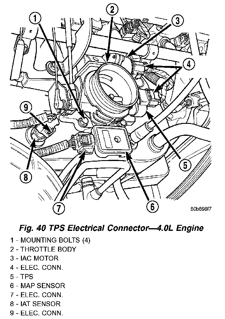 Fig. 40 TPS Electrical Connector - 4.0L Engine: