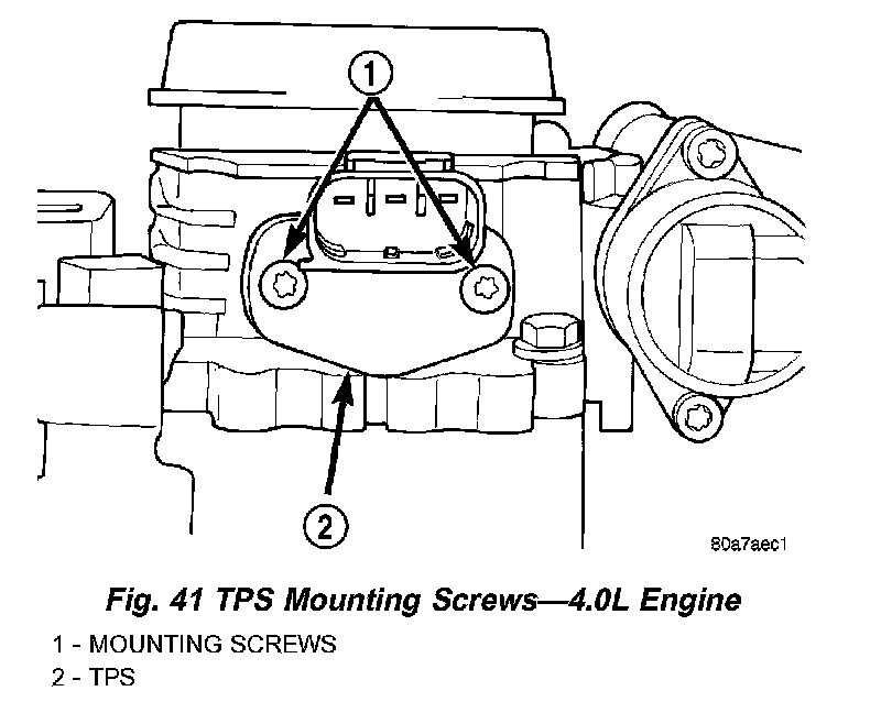 Fig. 41 TPS Mounting Screws - 4.0L Engine: