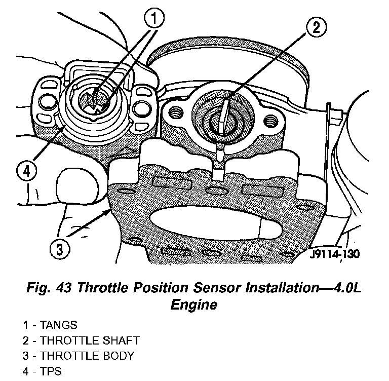 Fig. 43 Throttle Position Sensor Installation - 4.0L Engine:
