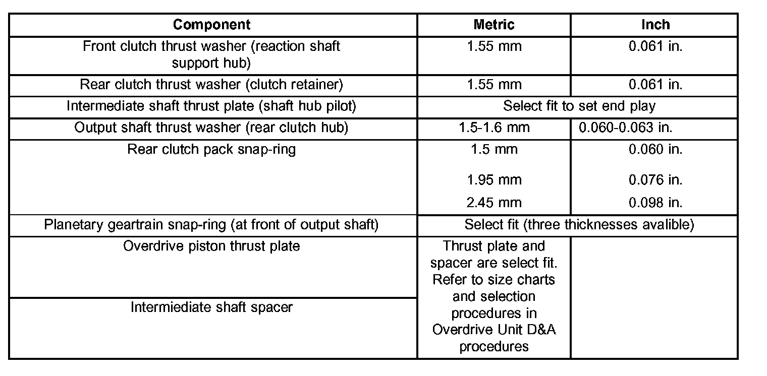 Thrust Washer/Spacer/Snap Ring Dimensions