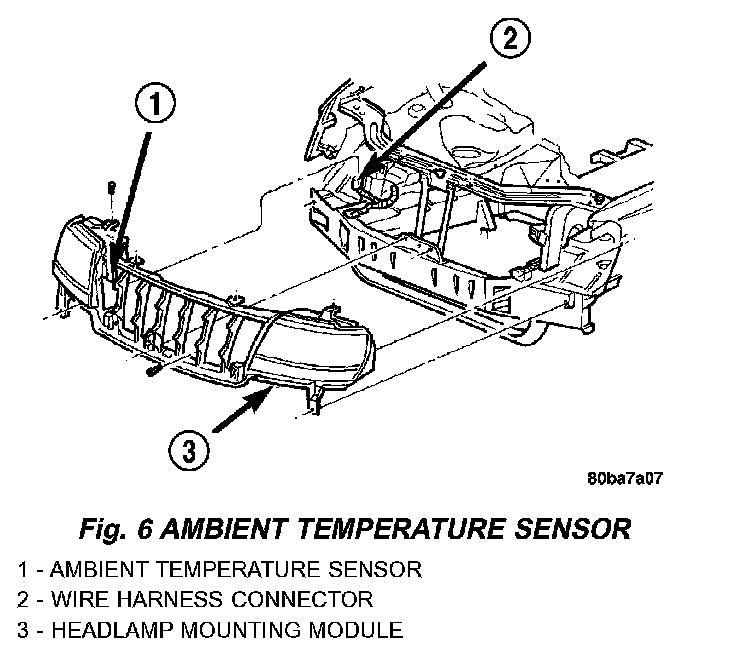 6. Remove the ambient temperature sensor from the headlamp mounting module.